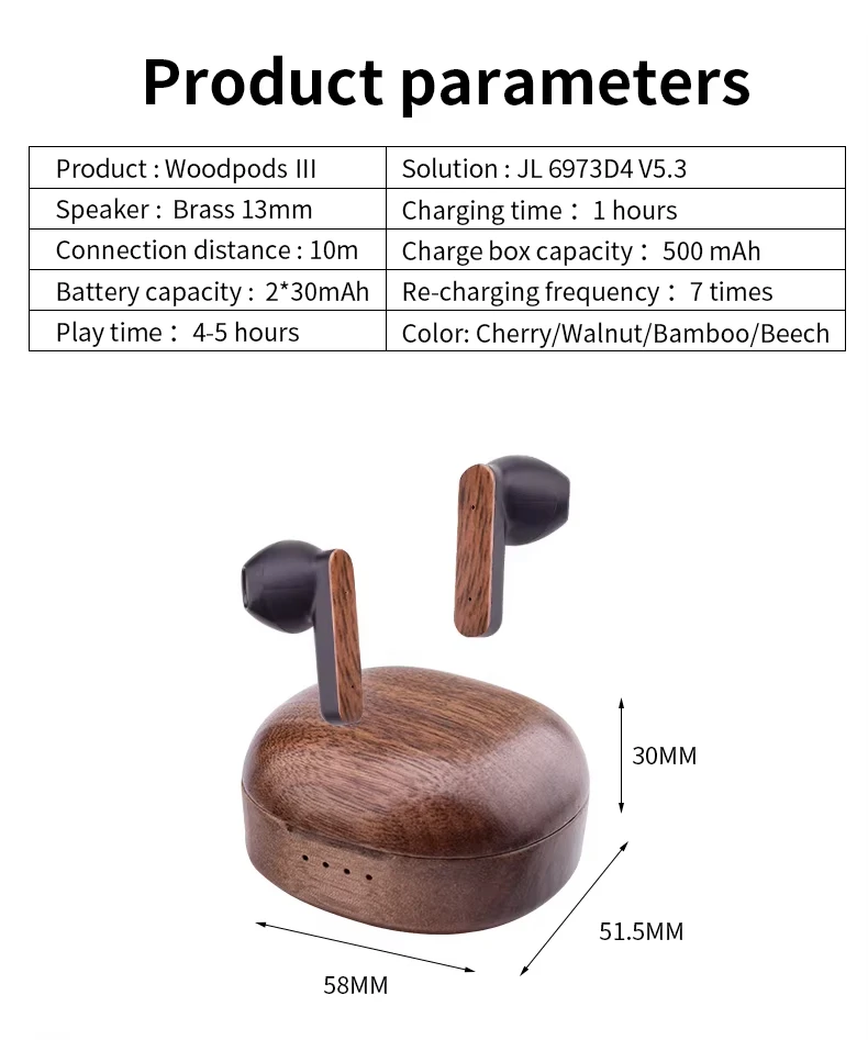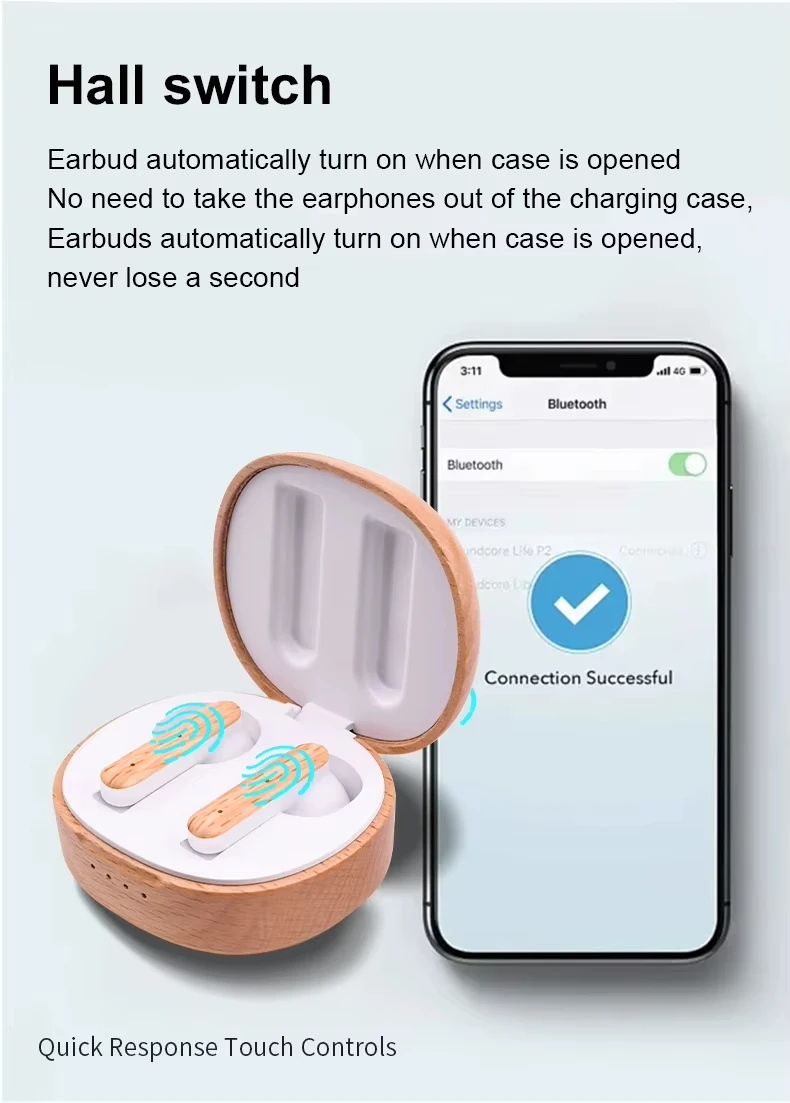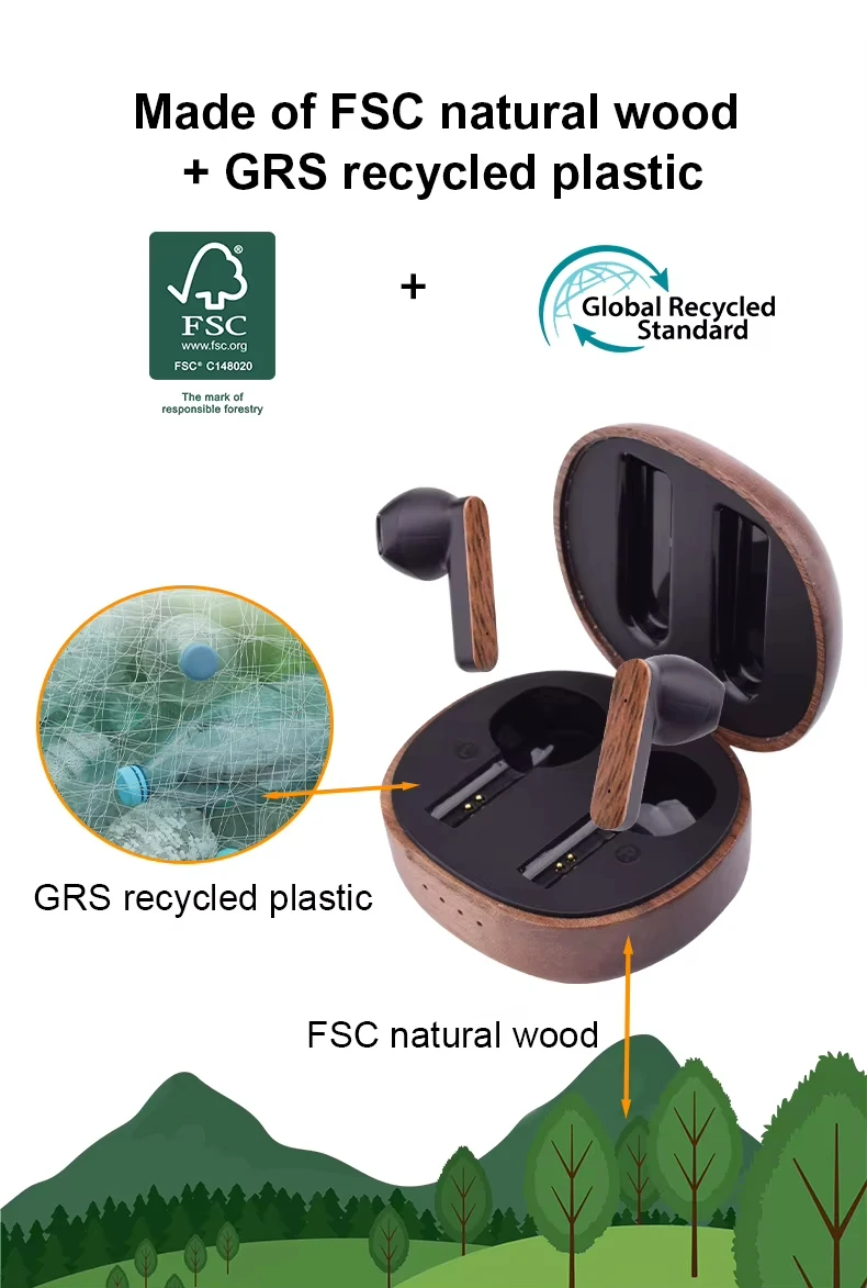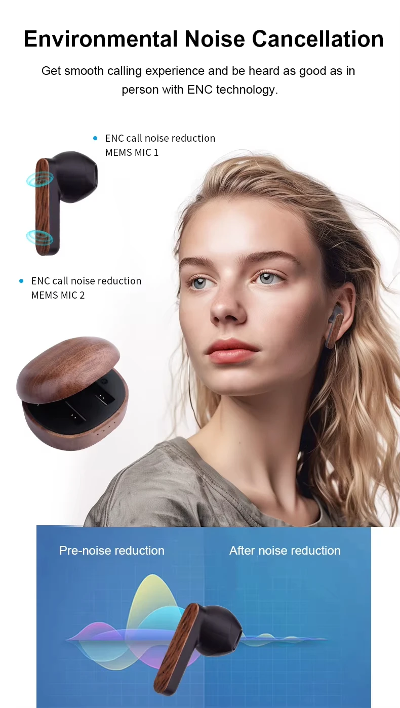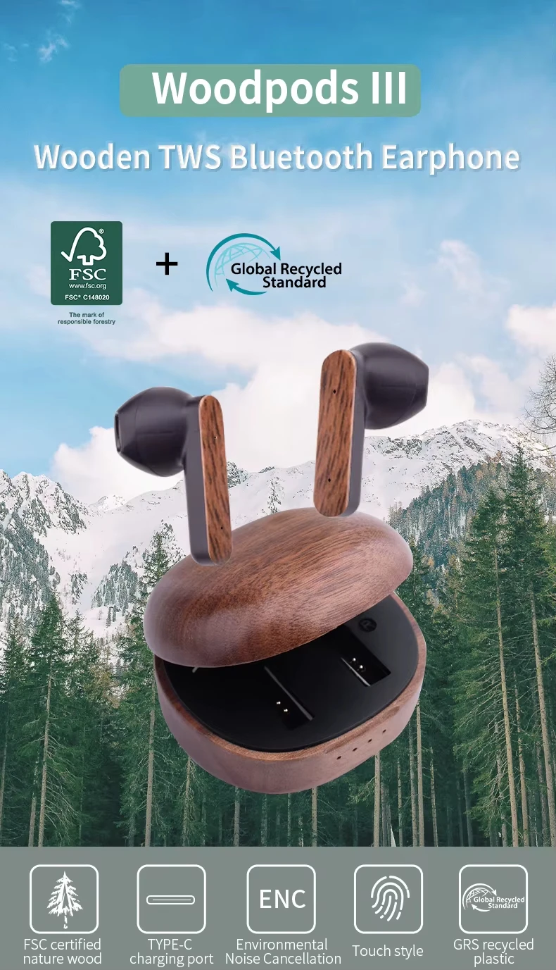 Wooden-Accent ANC TWS Earbuds
